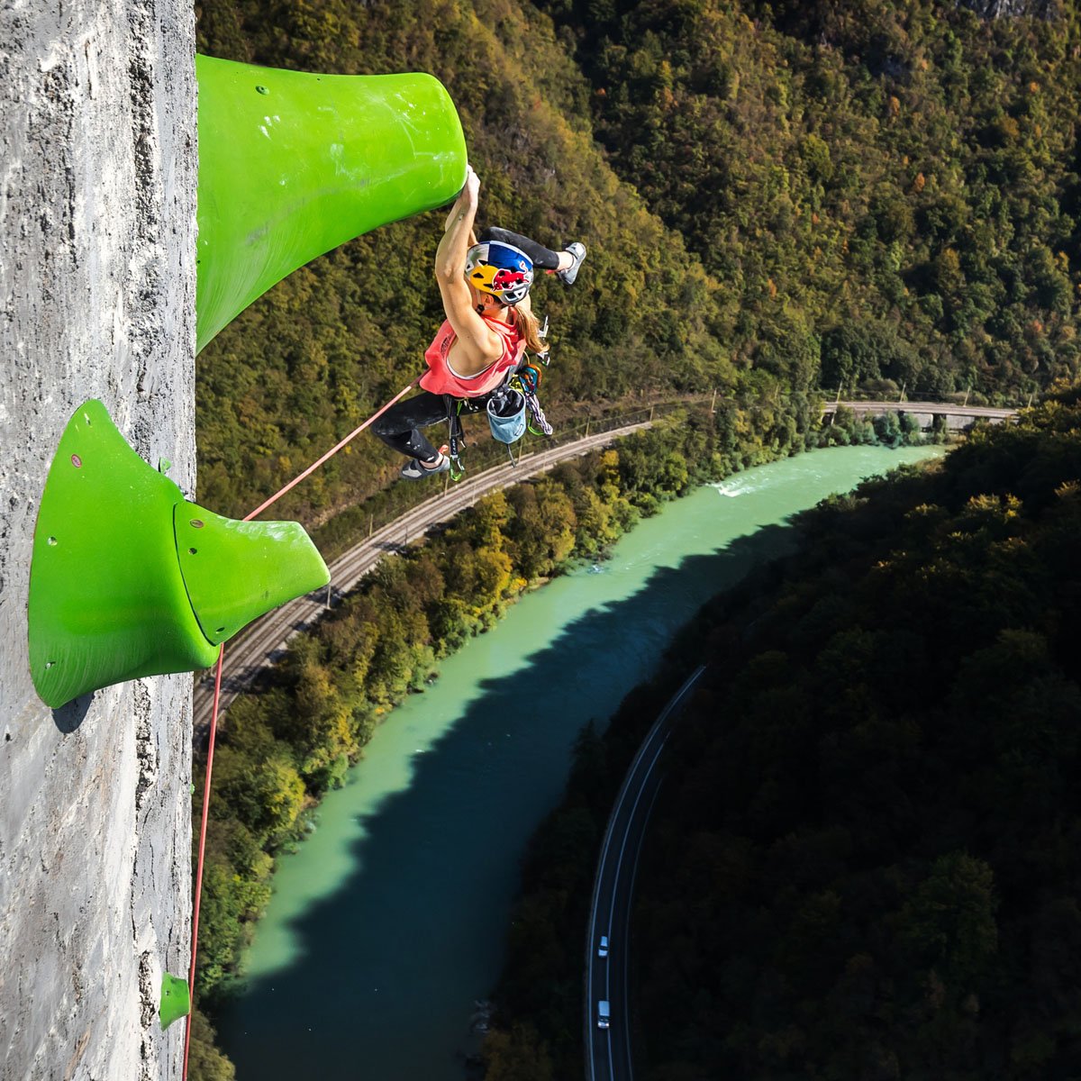 The majority of the route was set by two international routesetters, Katja Vidmar and Simon Margon. However, the route was set thanks to huge support of Stanko Gruden and Aleš Stražar and their high rope access as well as rope rigging skills.